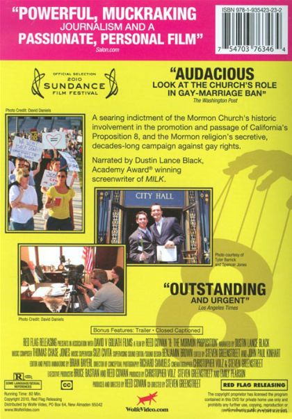 Filmmaker and ex-Church of Jesus Christ of Latter-day Saints member Reed Cowan examines that church's nationwide efforts to prevent the legalization of gay marriage - including California's Proposition 8, which was passed by voters in 2008. Confidential church documents, statements by high-ranking church officials and other sources detail 30 years of efforts to turn back gay rights, particularly by the Mormon-sponsored National Organization for Marriage.