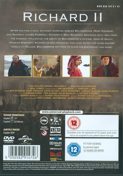 From IMDb: Fey,vain and foolish,young Richard initiates his downfall by banishing Henry Bolingbroke and the Earl of Mowbray as a resolution to their feud and then confiscating the lands of his uncle,Bolingbroke's father John of Gaunt,on John's death,to pay for a war in Ireland which he loses. This angers many courtiers including the Duke of York,who welcome Bolingbroke back to England,where he executes Richard's flatterers. The king himself is soon taken prisoner and murdered in his cell. Bolingbroke,now proclaiming himself Henry IV,vows a pilgrimage to atone for his part in the regicide. Written by don @ minifie-1.