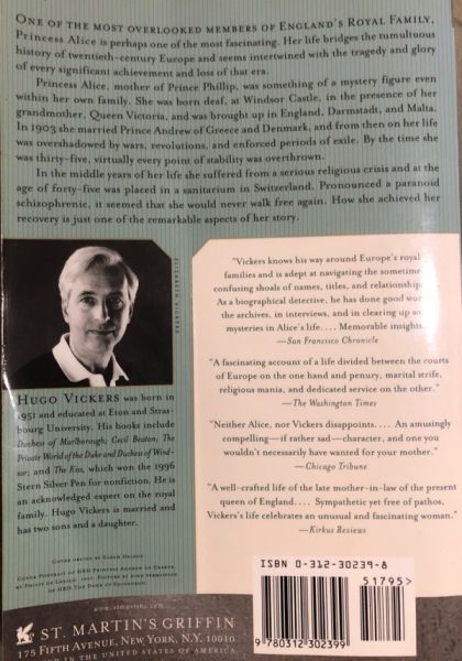 "In 1953, at the coronation of Queen Elizabeth II, Princess Alice was dressed from head to foot in a long gray dress and a gray cloak and a nun's veil. Amidst all the jewels, and velvet and coronets and the fine uniforms, she exuded an unworldly simplicity. Seated with the royal family, she was a part of them, yet somehow distanced from them. Inasmuch as she is remembered at all today, it is as this shadowy figure in gray nun's clothes..." Princess Alice, mother of Prince Phillip, was something of a mystery figure even within her own family. She was born deaf, at Windsor Castle, in the presence of her grandmother, Queen Victoria, and brought up in England, Darmstadt and Malta. In 1903 she married Prince Andrew of Greece and Denmark and from then on her life was overshadowed by wars, revolutions and enforced periods of exile. By the time she was thirty-five, virtually every point of stability was overthrown. Though the British royal family remained in the ascendant, her German family ceased to be ruling princes, her two aunts who had married Russian royalty had come to savage ends and soon afterwards Alice's own husband was nearly executed as a political scapegoat. The middle years of her life, which should have followed a conventional and fulfilling path, did the opposite. She suffered from a serious religious crisis and at the age of forty-five was removed from her family and placed in a sanitarium in Switzerland, where she was pronounced a paranoid schizophrenic. As her stay in the clinic became prolonged, there was a time where it seemed she might never walk free again. How she achieved her recovery is just one of the remarkable aspects of her story.