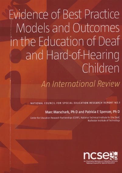 This research report was commissioned to provide the NCSE with an international review of the literature relating to best practise in the education of Deaf and Hard of Hearing children. The researchers have systematically compiled key lessons from a very broad range of international literature, and in addition, they have drawn from a study visit to Ireland which were undertaken as part of the process.
