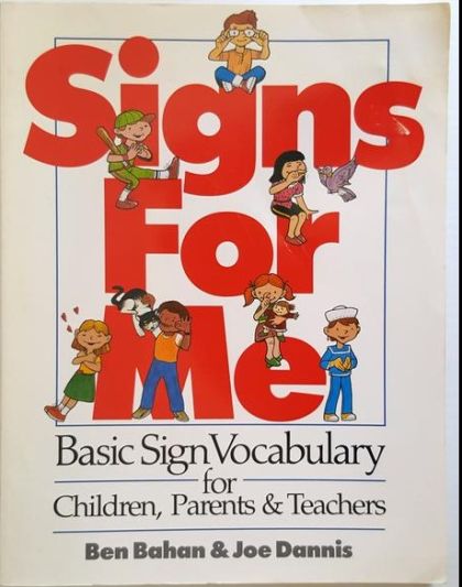 Teaches American Sign Language to children with more than 300 essential signs, their English equivalents and a picture “translation.” Provides a multi-dimensional sign language vocabulary for pre-school and elementary school children. The authors introduces common household items, animals, family, verbs, emotions, safety and other concepts. Each of the vocabulary words features a picture, sign illustration, and the English word. The American Manual Alphabet, number signs, and a list of different American Sign Language handshapes are included for handy reference.