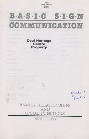 This booklet is a teachers guide containing suggestions for teaching Sign Language, focusing on family relations and social functions.