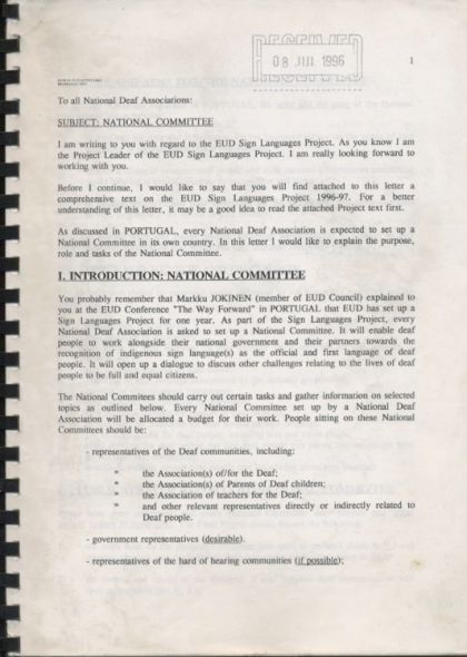 A report on the EUD sign language project and the encouragement to set up a national committee in every country