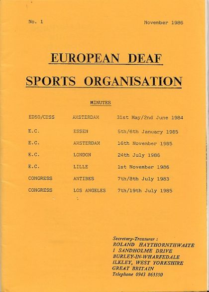 This booklet is about an European meeting Deaf Sports Organisation Committee held in Lille, France , 1st November 1986.