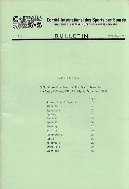 Official results from the 14th World Games for the Deaf,Cologne, FRG, 23 July to 1st August 1981