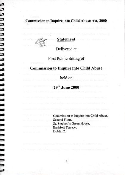 The purpose of this public sitting of the Commission to Inquire into Child Abuse is to explain to the public , and, in particular, to the survivors of institutional child abuse and other persons affected by its work, the Commission's understanding of the tasks it has been given in the Commission to Inquire into Child Abuse Act 2000 and how it proposes to carry out those tasks.