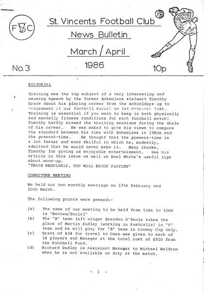 St. Vincent Football Club Feb/Mar Year 1987 + 5