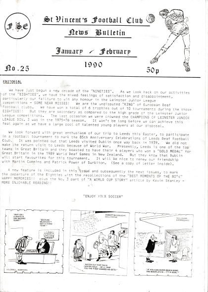 St. Vincent Football Club Jan/Feb Year 1990 + 2