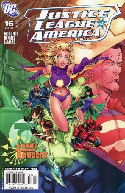 "A Brief Tangent" - Burglars break into Guy Gardner's storage locker, and accidentally activate a portal to another dimension. After some individuals trade places between the two worlds, the Justice League contains the situation, and puts of the people back where he belongs.