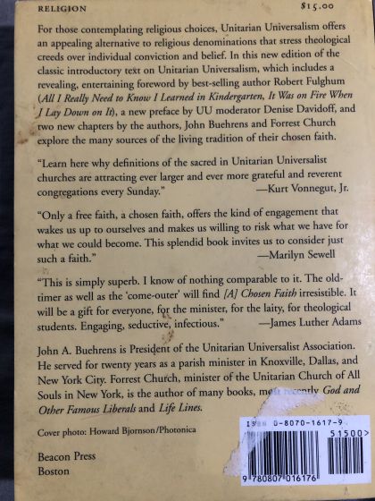 Affirming diversity, dialogue, and personal choice in religious living, providing common ground and community for people from a wide variety of backgrounds and beliefs, and encouraging the work for social justice that religion inspires, Unitarian Universalism has become an increasingly appealing religious alternative. A Chosen Faith is a clear, helpful introduction to this growing religious movement. Two long-time ministers and denominational leaders, John A. Buehrens and Forrest Church, describe the sources and history of Unitarian Universalism, how those traditions are adapted in congregations today, and how they each came to choose Unitarian Universalism as a career and a way of life. This revised edition includes two new chapters as well as a new foreword by best-selling writer and Unitarian Universalist Robert Fulghum. "An excellent introduction for anyone interested in the nature of Unitarian Universalist religious beliefs, the history of those movements, and the emphasis on openness, tolerance, and social concerns." -Michael J. McBride, Religious Studies Review "Simply superb. I know of nothing comparable to it. The old-timer as well as the 'come-outer' will find A Chosen Faith irresistible. It will be a gift for everyone, for the minister, for the laity, for theological students. Engaging, seductive, infectious." -James Luther Adams