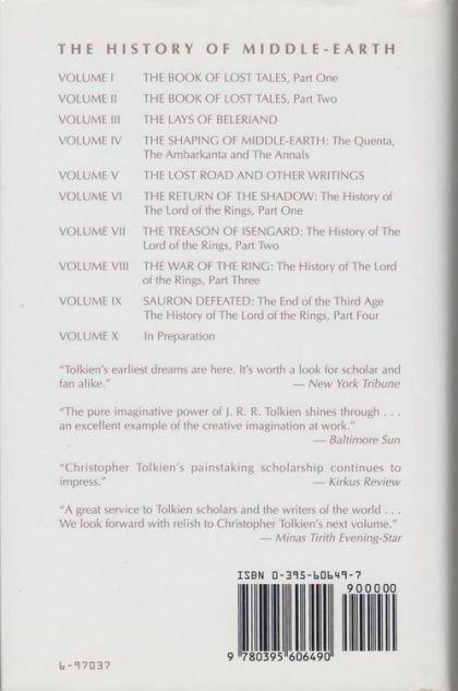 In the first part of Sauron Defeated, Christopher Tolkien completes his account of the writing of The Lord of the Rings, beginning with Sam's rescue of Frodo from the Tower of Kirith Ungol, and giving a very different account of the Scouring of the Shire. This part ends with versions of the previously unpublished Epilogue, an alternate ending to the masterpiece in which Sam attempts to answer his children's questions years after the departure of Bilbo and Frodo from the Grey Havens. The second part introduces The Notion Club Papers, now published for the first time. Written by J.R.R. Tolkien in the interval between The Two Towers and The Return of the King (1945-1946), these mysterious Papers, discovered in the early years of the twenty-first century, report the discussions of a literary club in Oxford in the years 1986-1987. Those familiar with the Inklings will see a parallel with the group whose members included J.R.R. Tolkien and C.S. Lewis. After a discussion of the possiblities of travel through space and time through the medium of 'true dream," the story turns to the legend of Atlantis, the strange communications received by members of the club out of remote past, and the violent irruption of the legend into northwestern Europe. Closely associated with the Papers is a new version of the Numenorean legend, The Drowning of Anadune, which constitutes the third part of the book. At this time the language of the Men of the West, Adunaic, was first devised - Tolkien's fifteenth invented language. The book concludes with an elaborate account of the structure of this language by Arundel Lowdham, a member of the Notion Club, who learned it in his dreams. Sauron Defeated is illustrated with the changing conceptions of the fortress of Kirith Ungol and Mount Doom, previously unpublished drawings of Orthanc and Dunharrow, and fragments of manuscript written in Numenorean script.