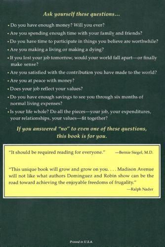 * Your Money or Your Life made all major bestseller lists in hardcover and paperback, including the New York Times, USA Today, Business Week, Publishers Weekly, and Washington Post
