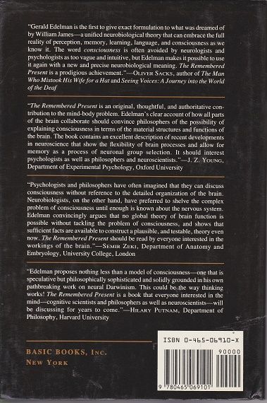 A genuine understanding of how mental states arise from the structure and function of the brain would be, as William James declared in 1892, ”the scientific achievement before which all past achievements would pale.” Can a comprehensive biological theory of consciousness be constructed in 1990? Any attempt has to reconcile evidence garnered from such diverse fields as developmental and evolutionary biology, neuroanatomy and neurophysiology, cognitive psychology, psychiatry, and philosophy.Having laid the groundwork in his critically acclaimed books Neural Darwinism (Basic Books, 1987) and Topobiology (Basic Books, 1988), Nobel laureate Gerald M. Edelman now proposes a comprehensive theory of consciousness in The Remembered Present. Integrating findings generated by the recent explosive growth in the neurosciences with current knowledge of anatomy, cell biology, and psychology, Edelman has been able to construct a detailed model of how we become aware of our own existence.In addition to providing a scientific account of brain function and consciousness, the theory advanced in The Remembered Present will have a significant impact on a wide variety of fields. It provides a new outlook that may prompt fundamental revisions in the way linguists view language, physicians classify mental diseases, and philosophers look at the mind-body problem.