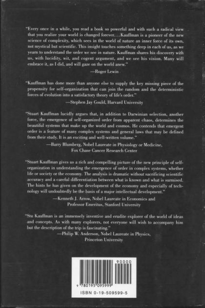 A major scientific revolution has begun, a new paradigm that rivals Darwin's theory in importance. At its heart is the discovery of the order that lies deep within the most complex of systems, from the origin of life, to the workings of giant corporations, to the rise and fall of great civilizations. And more than anyone else, this revolution is the work of one man, Stuart Kauffman, a MacArthur Fellow and visionary pioneer of the new science of complexity. Now, in At Home in the Universe, Kauffman brilliantly weaves together the excitement of intellectual discovery and a fertile mix of insights to give the general reader a fascinating look at this new science--and at the forces for order that lie at the edge of chaos. We all know of instances of spontaneous order in nature--an oil droplet in water forms a sphere, snowflakes have a six-fold symmetry. What we are only now discovering, Kauffman says, is that the range of spontaneous order is enormously greater than we had supposed. Indeed, self-organization is a great undiscovered principle of nature. But how does this spontaneous order arise? Kauffman contends that complexity itself triggers self-organization, or what he calls "order for free," that if enough different molecules pass a certain threshold of complexity, they begin to self-organize into a new entity--a living cell. Kauffman uses the analogy of a thousand buttons on a rug--join two buttons randomly with thread, then another two, and so on. At first, you have isolated pairs; later, small clusters; but suddenly at around the 500th repetition, a remarkable transformation occurs--much like the phase transition when water abruptly turns to ice--and the buttons link up in one giant network. Likewise, life may have originated when the mix of different molecules in the primordial soup passed a certain level of complexity and self-organized into living entities (if so, then life is not a highly improbable chance event, but almost inevitable). Kauffman uses the basic insight of "order for free" to illuminate a staggering range of phenomena. We see how a single-celled embryo can grow to a highly complex organism with over two hundred different cell types. We learn how the science of complexity extends Darwin's theory of evolution by natural selection: that self-organization, selection, and chance are the engines of the biosphere. And we gain insights into biotechnology, the stunning magic of the new frontier of genetic engineering--generating trillions of novel molecules to find new drugs, vaccines, enzymes, biosensors, and more. Indeed, Kauffman shows that ecosystems, economic systems, and even cultural systems may all evolve according to similar general laws, that tissues and terra cotta evolve in similar ways. And finally, there is a profoundly spiritual element to Kauffman's thought. If, as he argues, life were bound to arise, not as an incalculably improbable accident, but as an expected fulfillment of the natural order, then we truly are at home in the universe. Kauffman's earlier volume, The Origins of Order, written for specialists, received lavish praise. Stephen Jay Gould called it "a landmark and a classic." And Nobel Laureate Philip Anderson wrote that "there are few people in this world who ever ask the right questions of science, and they are the ones who affect its future most profoundly. Stuart Kauffman is one of these." In At Home in the Universe, this visionary thinker takes you along as he explores new insights into the nature of life.