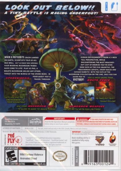 Battle in an epic war of tiny proportions through the surreal perspective of a three inch high Mushroom Man. Mushroom Men inhabit the world that goes on while we humans are looking the other way, in the twilight hours when we sleep. We tower above them and go about our business completely unaware of the war waged at our feet. After the comet had passed, the scientists concluded that the strange, green dust had no effect on the world. No one noticed that tiny plants and fungi were acting strangely. Mushrooms, cacti, flowers and vines had awakened to full consciousness. Tribes quickly formed, building plant and fungi nations and with nation building… came war! Mushroom Men: The Spore Wars shows gamers the mundane world from the surreal perspective of a three inch high Mushroom Man. As the brave Bolete Mushroom named Pax players can wreak havoc on their enemies by transforming common household trinkets and trash into weapons and tools.