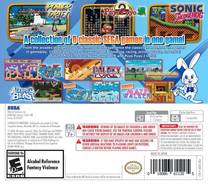 Trend-setting titles from the Sega Master system, Genesis/Mega Drive, and the arcades of the 80's arrive on the Nintendo 3DS - remastered with full stereoscopic 3D: