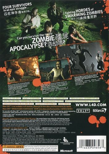 Set in a modern day survival-horror universe, the co-operative gameplay of L4D casts four "Survivors" in an epic struggle against hordes of swarming zombies and terrifying "Boss Infected" mutants.