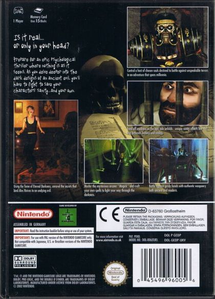 In a story that spans space and time, Eternal Darkness: Sanity's RequiemTM introduces 12 controllable characters through the last 2000 years of history, from ancient Rome to modern day. The story revolves around a young woman, Alexandra Rovias, who travels to Rhode Island to investigate the mysterious death of her grandfather. As the game unfolds, Alexandra experiences events through the game's other characters and eventually discovers the secret of human history.