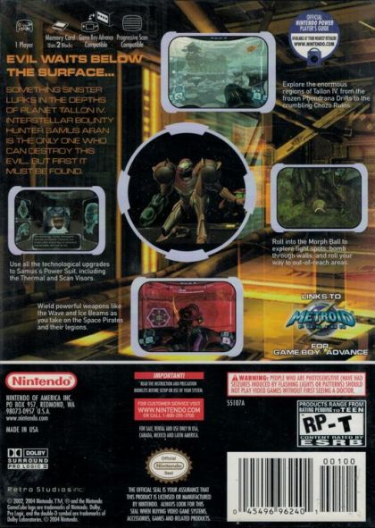 Samus first stopped the evil Space Pirates and Mother Brain from amassing an army of Metroids on the planet Zebes. Then she was called on to finish the job on SR388, ultimately ridding the universe of all but a single Metroid larva. In Super Metroid, for the Super Nintendo Entertainment System, Samus thwarted Mother Brain's attempt to snatch the captive Metroid larva from the scientists on Ceres. Now, Samus is once again called to investigate Space Pirate activities on the unexplored Tallon IV. Her adventure begins as she enters a mysterious derelict spaceship.