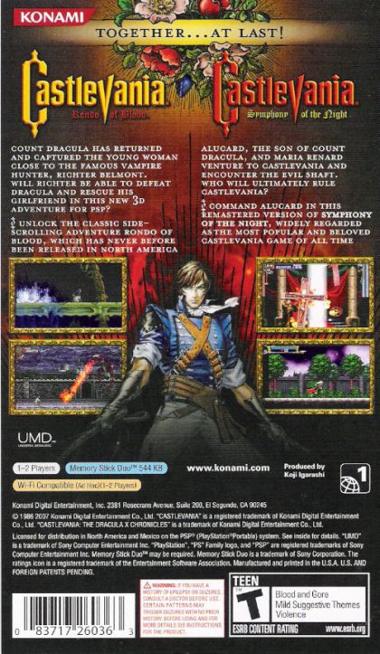 Set in in 1792, Castlevania: The Dracula X Chronicles follows Richter Belmont as he battles to return Dracula to the oblivion from which he came. Having seen his beloved Annette kidnapped by his vampiric nemesis, Richter and his loyal friend, Maria, must wield the legendary Vampire Hunter whip and fight through the tainted countryside and enter Dracula's Castle to stop this horrific scenario from destroying humanity.