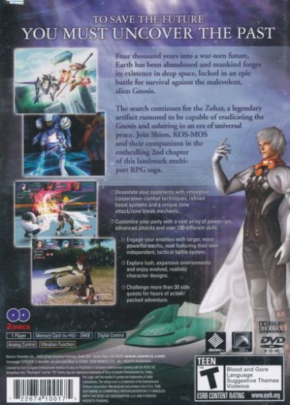 In Xenosaga® EPISODE II, thousands of years into a war-torn future, humanity has advanced to such a degree that its substantial resources of weapons and technology distort the boundaries of human limits. In this sequel, contend for control over the original Zohar to unravel its mystery and defeat the threat of the Gnosis. Customize your characters using over a hundred different skills and take control of a deeper, more evolved combat system. In Xenosaga EPISODE II, humanity must depend on their will to survive in the battle for the holy grail that could be their only savior ... or biggest threat yet.