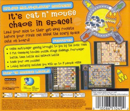 ChuChu Rocket. exclusive to the Dreamcast, offers a new on-line gaming experience in the form of a 4-player, adrenaline paced puzzle game. You can enjoy this wildly addictive game with friends, in the confines of your home, or over the Internet against complete strangers! Just lead the mice to a rocket while protecting them from the vicious cats along the way. ChuChu Rocket! - the concept is simple but the challenge is never ending...