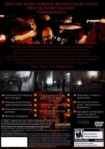 Resident Evil Outbreak tells the dramatic story of escaping from decaying zombies infected with the T-virus and the ultimate struggle to escape from Raccoon City. An outbreak of a secret biological weapon has infected the people of this isolated town which has caused everyday people to turn into flesh-eating zombies that swarm the streets. In a final attempt to stop the spread of the zombies the city is engulfed in flames. A fight is being fought by S.T.A.R.S. (Special Tactics and Rescue Squads) members Leon Kennedy and Claire Redfield as they are trapped within this horrific nightmare. They wage their war against the pharmaceutical giant, Umbrella who are responsible for the events leading up to this disaster. In the shadow of this nightmare are a few meagre survivors. These survivors must find a way to get out of this city before the government quarantines the entire area by firing a missile and destroying all traces of life. Players must beat the clock or die trying. Resident Evil Outbreak is the story of those survivors and their ordeal. These are just regular people, fighting to survive the nightmare…