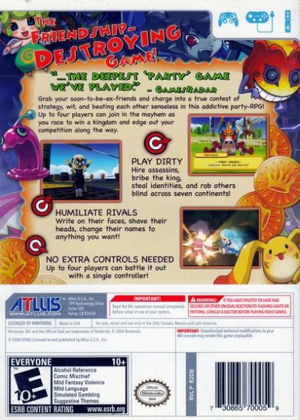 The King of Dokapon has offered you his throne; all he asks for in return is that you dispose of an invading horde of thieving monsters. Trouble is - you're not the only one he asked. Contend with up to three friends as you navigate playfields littered with challenges, monsters to defeat, and rare secrets to unlock. Warning: Relationship counseling not included.