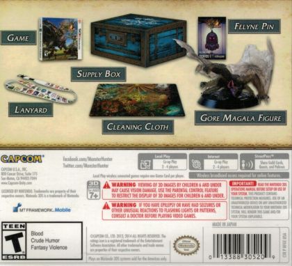 Monster Hunter 4 Ultimate is the newest installment in the popular Monster Hunter series, which has sold more than 31 million units worldwide to date. In Monster Hunter 4 Ultimate, players will take on the role of a hunter that joins up with a traveling caravan to explore new lands and towns along the way. This grand adventure will include hundreds of quests to take on a variety of extraordinary creatures that yield valuable resources used for weapons and equipment. Launching on Nintendo 3DS, Monster Hunter 4 Ultimate represents the biggest leap forward ever for the series with more new content and exciting features than ever before. Also, for the first time ever for the Monster Hunter series on a handheld system, players will be able to join up with friends over the internet via the Nintendo Network, as well as the previously available local wireless option.