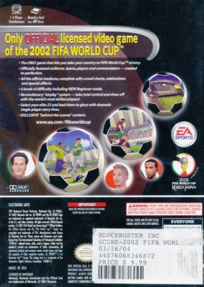 As the official interactive games provider of the 2002 FIFA World Cup tournament, the game promises to capture every moment of glory, every emotion, every sound and every aspect of a truly global event, giving consumers the opportunity to kick-off the FIFA World Cup frenzy by playing in the tournament before it begins. Gamers will find a whole new world of showboating and high-tempo, high-impact action, obvious from the first touch of the ball.