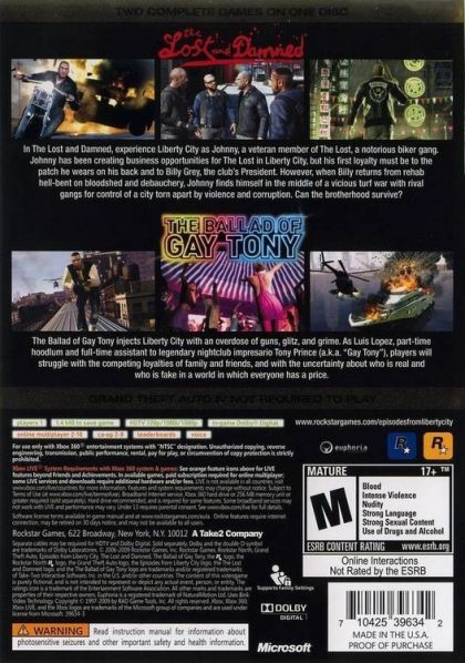 The Lost and Damned: In The Lost and Damned, experience Liberty City as Johnny, a veteran member of The Lost, a notorious biker gang. Johnny has been creating business opportunities for The Lost in Liberty City but his first loyalty must be to the patch he wears on his back and to Billy Grey, the club's President. However, when Billy returns from rehab hell-bent on bloodshed and debauchery, Johnny finds himself in the middle of a vicious turf war with rival gangs for control of a city torn apart by violence and corruption. Can the brotherhood survive?