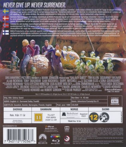 For four years, the courageous crew of the NSEA Protector — Commander Peter Quincy Taggart, Lieutenant Tawny Madison, and Doctor Lazarus — set off on a thrilling and often dangerous mission in space ... until their series was cancelled! Now, twenty years later, aliens under attack have mistaken the Galaxy Quest television transmissions for "historical documents" and beam up the crew of has-been actors to save the universe. With no script, no director, and no clue, the actors must turn in the performances of their lives.
