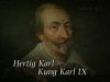 1550-1611. Karl IX var den yngste av Gustav Vasas söner. Han kallades under större delen av sitt liv Hertig Karl och var en hårdför maktspelare i de intriger som präglade dåtidens kungamakt. Framför allt ledde maktspelet till en kamp mellan Hertig Karl och hans egen brorson Sigismund, där hertigen styrkor segrade i slaget vid Stångebro. Det var också Hertig Karl som år 1600 lät halshugga den lagliga kungen Sigismunds vänner, i det som kommit att kallas "Linköpings blodbad".