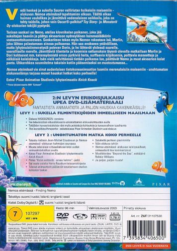 Nemo, an adventurous young clownfish, is unexpectedly taken from his Great Barrier Reef home to a dentist's office aquarium. It's up to his worrisome father Marlin and a friendly but forgetful fish Dory to bring Nemo home -- meeting vegetarian sharks, surfer dude turtles, hypnotic jellyfish, hungry seagulls, and more along the way.