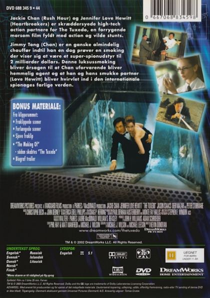Cabbie-turned-chauffeur Jimmy Tong learns there is really only one rule when you work for playboy millionaire Clark Devlin : Never touch Devlin's prized tuxedo. But when Devlin is temporarily put out of commission in an explosive accident, Jimmy puts on the tux and soon discovers that this extraordinary suit may be more black belt than black tie. Paired with a partner as inexperienced as he is, Jimmy becomes an unwitting secret agent.