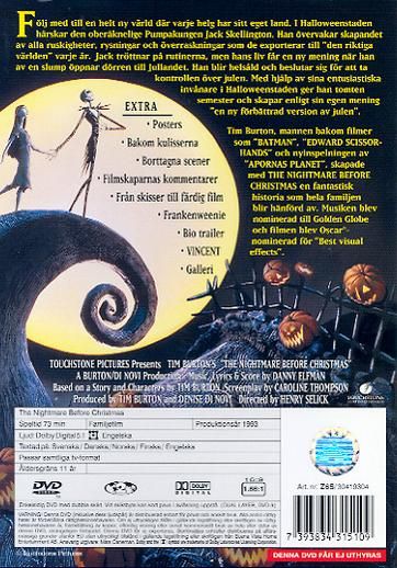 Tired of scaring humans every October 31 with the same old bag of tricks, Jack Skellington, the spindly king of Halloween Town, kidnaps Santa Claus and plans to deliver shrunken heads and other ghoulish gifts to children on Christmas morning. But as Christmas approaches, Jack's rag-doll girlfriend, Sally, tries to foil his misguided plans.