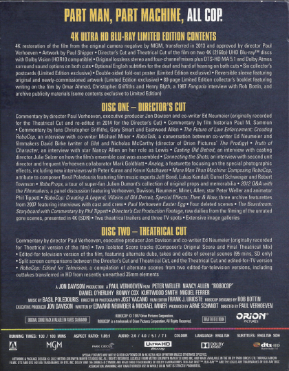 In a violent, near-apocalyptic Detroit, evil corporation Omni Consumer Products wins a contract from the city government to privatize the police force. To test their crime-eradicating cyborgs, the company leads street cop Alex Murphy into an armed confrontation with crime lord Boddicker so they can use his body to support their untested RoboCop prototype. But when RoboCop learns of the company's nefarious plans, he turns on his masters.