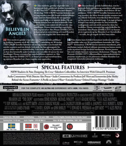 Exactly one year after young rock guitarist Eric Draven and his fiancée are brutally killed by a ruthless gang of criminals, Draven, watched over by a hypnotic crow, returns from the grave to exact revenge.