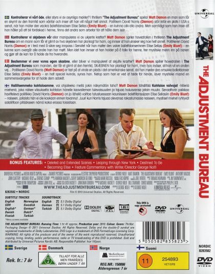 A man glimpses the future Fate has planned for him – and chooses to fight for his own destiny. Battling the powerful Adjustment Bureau across, under and through the streets of New York, he risks his destined greatness to be with the only woman he's ever loved.