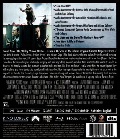 In order to foil a terrorist plot, an FBI agent undergoes facial transplant surgery and assumes the identity of a criminal mastermind. The plan turns sour when the criminal wakes up prematurely and seeks revenge.