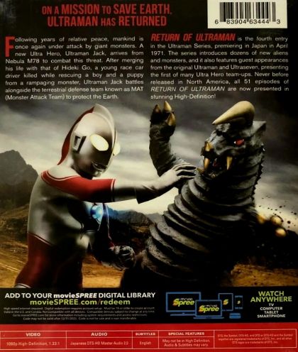 Another being from Nebula M-78, identical to the original Ultraman, combines with car racer-turned-MAT patrol member Hideki Gô, and fights assorted menaces in a frightening new "Age of Monsters."