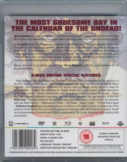 Black Sabbath is a 1963 Italian horror film directed by Mario Bava. Boris Karloff, in addition to appearing in the linking passages, has a role in "The Wurdalak" segment (based on a story by Aleksey Konstantinovich Tolstoy). The film comprises three horror stories, the others being "The Drop of Water" and "The Telephone."