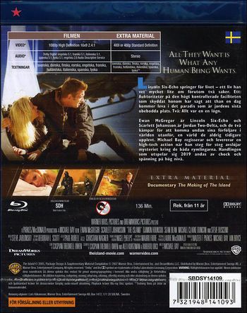 Lincoln Six-Echo is a resident of a seemingly Utopian but contained facility in the mid 21st century. Lincoln hopes to be chosen to go to the "The Island" the last uncontaminated spot on the planet. But Lincoln soon discovers that everything about his existence is a lie.