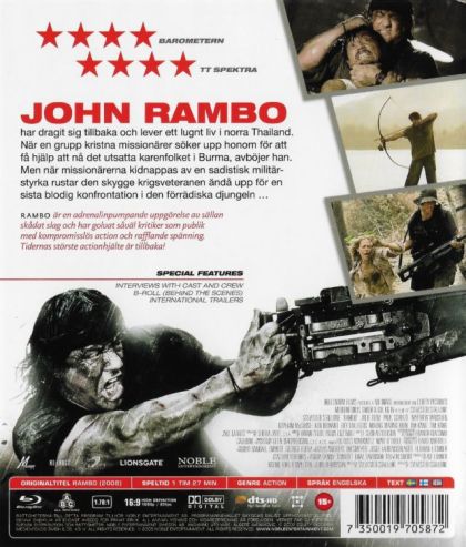 When governments fail to act on behalf of captive missionaries, ex-Green Beret John James Rambo sets aside his peaceful existence along the Salween River in a war-torn region of Thailand to take action. Although he's still haunted by violent memories of his time as a U.S. soldier during the Vietnam War, Rambo can hardly turn his back on the aid workers who so desperately need his help.