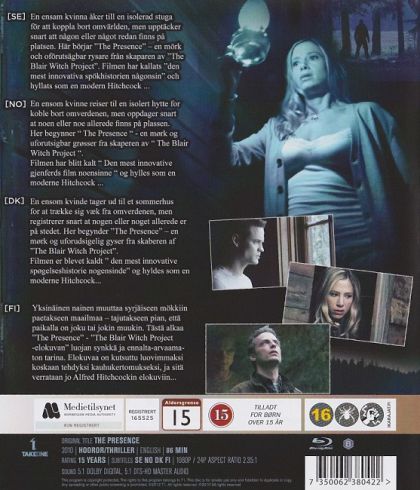In this darkly romantic ghost story, a woman (Academy Award Winner Mira Sorvino) travels to an isolated cabin where she finds herself stalked by an apparition (Shane West, "A Walk To Remember") who has come to inhabit her space as his own. With the unexpected arrival of the woman's boyfriend (Golden Globe nominee Justin Kirk, "Weeds"), the dark spirit's haunting grows more obsessive. Soon the woman begins to exhibit weirdly irrational behavior as the thin line between sanity and possession begins to unravel. A stunning directorial debut from Tom Provost, "The Presence" is grounded in terrific performances, beautiful cinematography, a lush musical score, and a Hitchcockian style that explores the idea of pure cinematic storytelling.