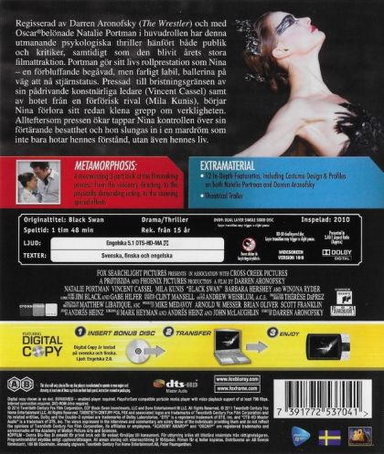 Nina is a ballerina in a New York City ballet company whose life, like all those in her profession, is completely consumed with dance. She lives with her obsessive former ballerina mother Erica who exerts a suffocating control over her. When artistic director Thomas Leroy decides to replace prima ballerina Beth MacIntyre for the opening production of their new season, Swan Lake, Nina is his first choice. But Nina has competition: a new dancer, Lily, who impresses Leroy as well. Swan Lake requires a dancer who can play both the White Swan with innocence and grace, and the Black Swan, who represents guile and sensuality. Nina fits the White Swan role perfectly but Lily is the personification of the Black Swan. As the two young dancers expand their rivalry into a twisted friendship, Nina begins to get more in touch with her dark side - a recklessness that threatens to destroy her.