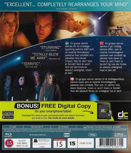 On the night a comet is passing near Earth, a dinner party takes an odd turn. When the power goes out, eight friends discover that the only house on the street left with power also holds many secrets.
