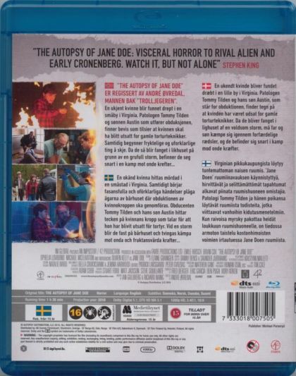 Father and son coroners who receive a mysterious homicide victim with no apparent cause of death. As they attempt to identify the beautiful young "Jane Doe," they discover increasingly bizarre clues that hold the key to her terrifying secrets.