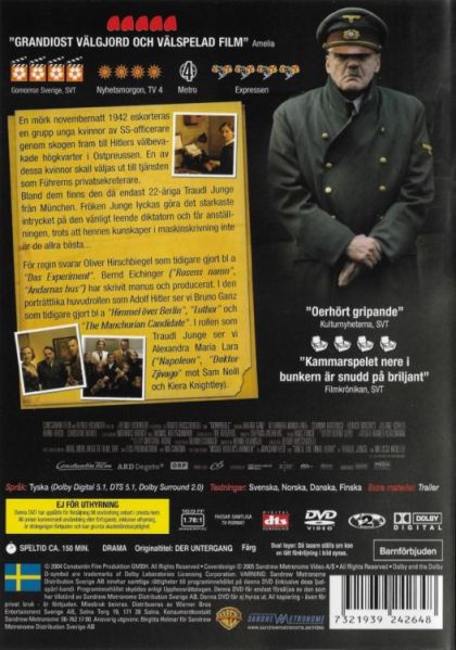 | Writer | Bernd Eichinger, Joachim Fest, Traudl Junge, Melissa Müller | |