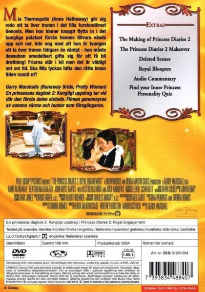 Mia Thermopolis is now a college graduate and on her way to Genovia to take up her duties as princess. Accompanied by her friend Lilly, Mia continues her 'princess lessons', like riding horses side-saddle and archery. But her already complicated life is turned upside down once again when she learns that she is to take the crown as queen earlier than expected, all while she meets a mysteriously charming young man.